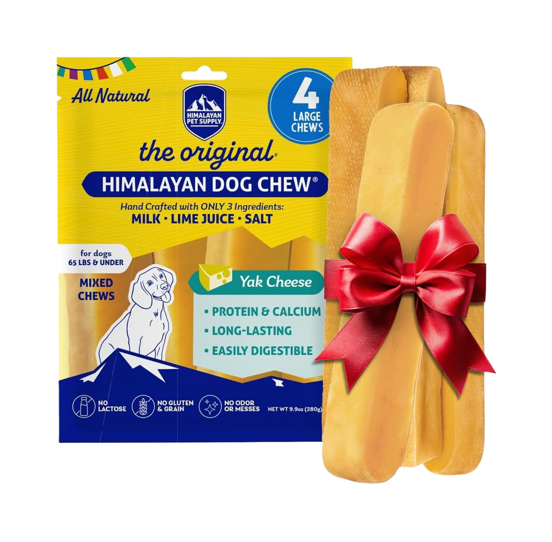 They are crafted using an ancient cultural technique from Nepal. Our team spent four years re-engineering the ancient recipe by removing the lactose and fat content to create a healthy, long-lasting chew for dogs.