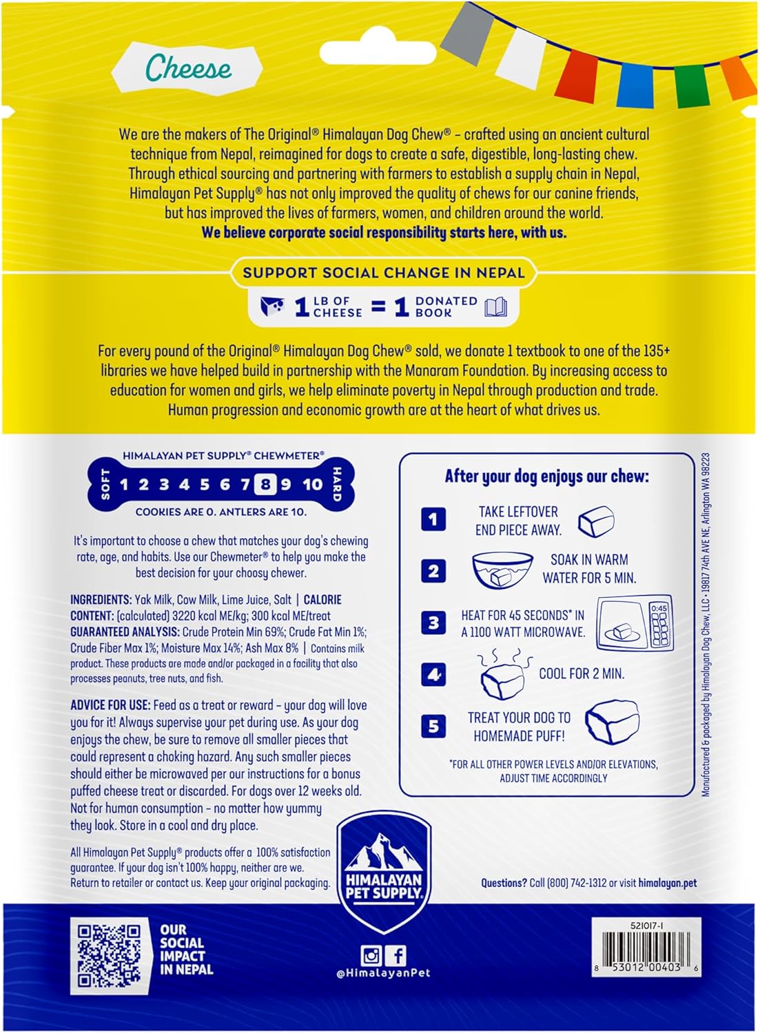 - Manaram Headquarters facility in Nepal, where our Cheese Chews are crafted, is a woman-run facility, where women receive fair and equal pay for their work